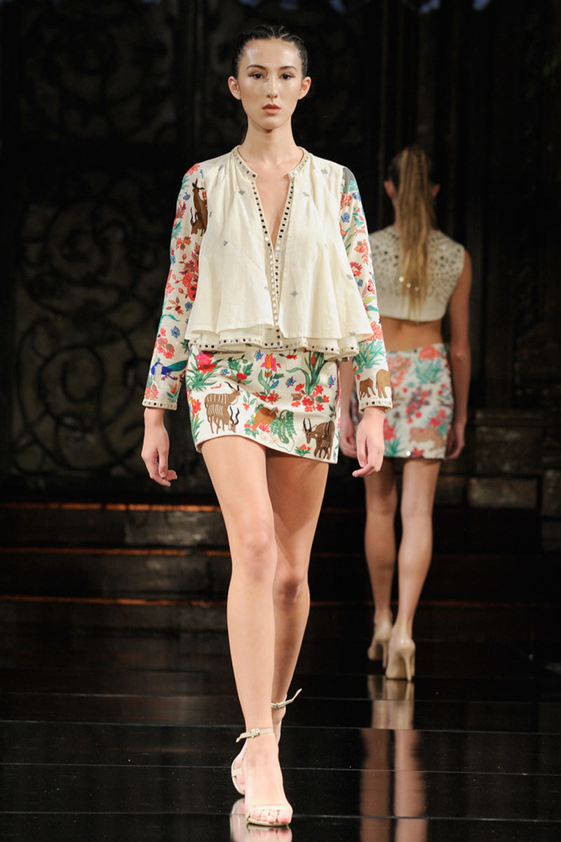 - Features hand aari embroidered motifs inspired by animals, nature and co-existence.